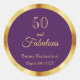 Elegant, classic, and simple 50 and fabulous birthday sticker. Chic girly and feminine purple background color with a faux gold frame. The text: 50 and fabulous. Templates for her name and a date. Date of birth or the date of the party. Golden letters. Perfect for party favors or as a save the date reminder for your guests.