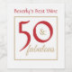 Best Wine, 50 & Fabulous Birthday sticker written in red and gold trendy typography with a golden border.