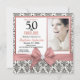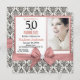 50 and Fabulous Rose gold bow damask 50th Birthday Invitation