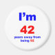 I'm 42 years away from being 92 Humorous 50th birthday design that seems to shave a few years off your age with the very large lettering "I'm 42" and then the much smaller lettering "years away from being 92". Makes a great 50th birthday gift.