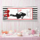 A chic and trendy 50th birthday party banner is a great addition for your fiftieth birthday party celebration. The words "50 & FABULOUS" are set using popular typography in fire engine red and black text colors. The text and font colors can be changed using the EDIT menu. A red ribbon bow complements the banner along with a bold black and white stripes pattern. Other colors and patterns are available.