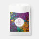 Stylish abstract 50 & FABULOUS favor bags showing a vibrant design of purples, yellows and greens . Message reads HAPPY 50 & FABULOUS BIRTHDAY and you can customize your name. These stylish favor bags are sure to bring a lot of color to your celebrations. Matching stationery and party supplies are available in the ABSTRACT Collection by Berean Designs.