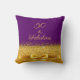 Elegant, classic, glamorous and feminine. A faux gold colored bow. Purple background. With the text: 50 and Fabulous