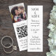 This invite is tiny in size but big on modern simplicity. Invite family and friends to a simply stylish wedding celebration with an elegant and unique 1"x3" all-in-one invitation with QR code RSVP. With just one small card you can invite wedding guests to your upcoming special day celebration, provide all of the important information (such as directions, registry, hotel accommodations), and let the website organize the rsvp's. No additional enclosure cards are needed. The picture and all wording on this template are simple to personalize. The narrow vertical rectangular shape makes it perfect to use as a small bookmark. The modern minimalistic black and white design features one photo of the engaged couple, 1 custom QR code, and casual elegant handwritten typography. By scanning a QR code with a phone camera, guests are sent directly to the wedding website for more details and to reply to the invitation. An online response process reduces the chance that cards will be lost in the mail. You can also ask for more specific information, such as meal choices, food allergies, and song requests. This contemporary invitation makes a chic addition to your upcoming special day celebration. Congratulations to the bride and groom!