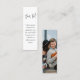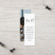 This mini bookmark is tiny in size but big on modern simplicity. Compliment simply stylish wedding invitations and provide important information to guests with unique custom photo 1"x3" enclosure cards. All text on this template is simple to personalize or delete as needed. This card can include any celebration details of your choice such as directions, website, special requests, accommodations, reception or rsvp. The elegant minimalist black and white design features casual handwritten script typography and one picture of your choice.
