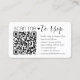 Share one of your engagement or wedding photos and simplify RSVP responses with chic modern QR Code enclosure cards. Picture and all text are simple to customize, including wording that reads "scan me to rsvp". To make your own QR code using the generator, simply type the website URL into the template. By scanning the card with their phones, guests are sent directly to the wedding website to reply to the invitation. An online rsvp process reduces the chance that cards will be lost in the mail. It's also more versatile, in that you can ask for more detailed information, such as meal choices, food allergies, and song requests. All response information can be personalized or deleted. The black and white design features a cute heart, modern minimalist typography, handwritten script calligraphy and 1 picture of your choice. This card is a stylish way of asking wedding guests to kindly reply to your upcoming special day celebration.