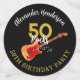 Personalized Rocks 50 cool fire guitar 50th birthday party table confetti with three cool watercolor guitar designs on black background. An electric guitar with Fire flame pattern and red pick guard illustration with personalized black and gold modern cool typography. This easy to use template creates the perfect party decor to celebrate fifty in rock n roll style and is ideal for a guitarist, musician and music lovers. This cool modern musical instrument design celebrates the music energy of this wonderful musical instrument and is the perfect way to rock a fiftieth birthday celebration. Original artwork by artist Catherine Sweetman