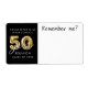 High school or college university class reunion custom color self-adhesive name tag stickers for home printing or handwriting. The design features faux metallic gold balloon numbers and modern script typography for a 50 YEAR CLASS REUNION, the saying REMEMBER ME?, your school name and class year in your choice of background color (shown in black) that you can change in EDIT to your school color. ASSISTANCE: For help with design modification or personalization, contact the designer BEFORE ORDERING via the Zazzle Chat MESSAGE tab below or email makeitaboutyoustore@gmail.com.