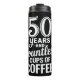 Playful black-and-white hand-lettered design featuring “50 Years and Countless Cups of Coffee” with steaming mugs and coffee beans accenting the typography. Perfect for celebrating 50 years of marriage, friendship, or work with a humorous nod to coffee lovers who know the joy of countless cups shared over the years. Great for milestone anniversaries, coffee-themed celebrations, and fun gifts for caffeine enthusiasts.