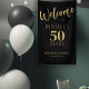 Modern gold typography script 50 years birthday party personalized black welcome vertical banner template suitable for any age adult milestone birthday.