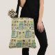 Large all-over-print tote bag with a vintage 1950s image, on both sides, of blue, green, brown and tan barkcloth. Barkcloth is cloth made from the inner bark of the paper mulberry or similar tree. See the entire Nifty 50s Tie collection in the SPECIAL TOUCHES | Party Favors section.