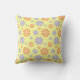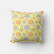 Cute yellow pillow with orange and purple flower design.