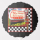 Medium air-filled black balloon with an image, on both sides, of a 50s retro diner sign, red diner clock, and a vintage 50s image of a female server on a black and white checkerboard with a red border. Optional text. See the entire Nifty 50s Balloon collection in the DÉCOR | Balloons section.
