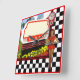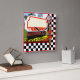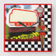 10.75” x 10.75” customizable acrylic wall clock with an image of a 50s retro diner sign, red diner clock, and a female server on a black and white checkerboard. See the entire Nifty 50s Clock collection in the DECOR | Clocks section.