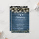 50th Anniversary Blue Rustic Wood Gold Hearts Invitation