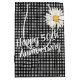 White daisy on black and white gingham pattern for 50th wedding anniversary.