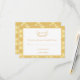 This 50th wedding anniversary RSVP card features a damask pattern in various shades of gold. The design also includes a simple laurel wreath and a line border around the white text area. Same design 50th wedding anniversary invitation is also available at the store.