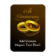Pretty gold script 50th anniversary with golden brown and dark black background with subtle swirling lines and two interlocking wedding band rings. An elegant and rich celebration of 50 years of wedding and wedded bliss. All Designs Copyright © 2012 www.CuteComfy.com