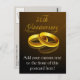 Pretty gold script 50th anniversary with golden brown and dark black background with subtle swirling lines and two interlocking wedding band rings. An elegant and rich celebration of 50 years of wedding and wedded bliss. All Designs Copyright © 2012 www.CuteComfy.com