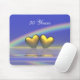 Mouse pad with my original image of two golden hearts floating on the water under a rainbow. Customizable text says "50 Years".