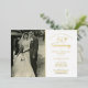 Personalize with your favorite wedding photo and your special 50th golden wedding anniversary celebration details in chic gold foil typography. The reverse features gold love heart confetti. Designed by Thisisnotme©