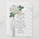 50th anniversary party for parents invitation elegant design on white lace printed background with 3D-look gold "50th Anniversary." One single white rose with pearls border and linked gold hearts. Image and illustration composition for elegant formal wedding anniversary invitation .The text is fully customizable. Add your information or change it completely. Select a different font and color.
