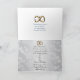 50th wedding anniversary blue hydrangea flowers floral design for party invitation on white lace like background with 3D gold text "50th Anniversary". Custom design ready for you to personalize with the names of the anniversary couple. The inside text is fully customizable.