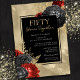 50th wedding anniversary Red and Blacks Floral Invitations. Faux gold Floral Leaves. Script font highlights with easy to read serif name font. Easy to adjust for your own wedding needs.
