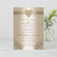 50th Anniversary vow renewal Invitation. Image and illustration composition for elegant formal wedding anniversary invitation on gold satin-look background with faux sparkle accents and heart. Golden ribbon. The text is fully customizable.