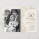50th Anniversary With Photo - Ivory Gold Floral Invitation