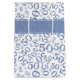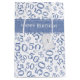 This over-the-hill numeric design is a blue and white random number pattern with a blue milestone number 50 repeated in varied sizes and angles over a white background. There is a printed banner and a gift tag with text templates so you can easily personalize any or all of the text.