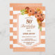 50th Birthday Apricot Striped Floral Party Invitation