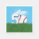 A white baseball in green grass, blue sky, and clouds for a 50th birthday.
