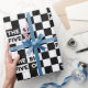 50th Birthday Black and White Checkered Pattern Wrapping Paper