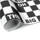 Make your gift stand out at a 50th birthday party or fiftieth milestone anniversary celebration with wrapping paper featuring a bold black and white checkered pattern with the words "The Big Five Oh" repeating in alternating white on black and black on white text.