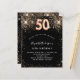 A modern, stylish and glamorous invitation for a 50th birthday party. A black background decorated with faux glitter. The name is written with a modern golden colored hand lettered style script. Personalize and add your party details. Number 50 is written with a balloon style font, script.