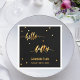 Elegant and modern for a 50th birthday party. Black backdrop and faux gold text written with a trendy hand-lettered style script: hello fifty. With golden dots as decor. Templates for a name and date.