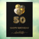 For a glamorous 50th birthday party. A black background, decorated with balloons. With the text: Happy Birthday. Personalize and add a name. The name is written in dark rose gold with a modern hand lettered style script with swashes. Number 50 is written with a trendy balloon style font, leopard pattern. To keep the swashes only delete the sample name, leave the spaces or emoji's in front and after the name.