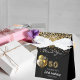 A black background, decorated with balloons and faux gold confetti.. Number 50 is written with a trendy balloon style font, leopard pattern. Personalize and add a name and a date. 50th birthday and Thank You written with a modern hand lettered style script.