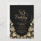 50th Birthday Black Gold Roses Invitation