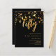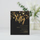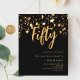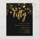 A modern, stylish invitation for a 50th birthday party for both him and her. Decorated with golden stars. Black background and the word Fifty written with large faux gold letters. Personalize and add a name and party details.