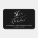 Elegant and chic black 50th birthday party favors featuring "50 & Fabulous" written in a white calligraphy script. You can personalize with her name and the party date in modern white typography.