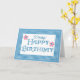 A pretty 50th Birthday Card, with a blue and white check gingham pattern and two pink flowers. You can change the inside greeting if you wish.