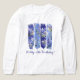 Four purple and blue vertical brush strokes create a vibrant frame for blue and white larkspur flowers. Larkspur also known as delphinium is the July Birth Month Flower. Brush strokes are one of the hottest trends in pattern design this summer. One line of text lets you customize your t-shirt. In this case, it is meant for the birthday celebrant to wear at their party.