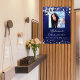 A welcome poster for a 50th birthday party. A navy blue background with elegant faux silver stars. The blue color is uneven. Personalize and add a photo, name and text. White letters.