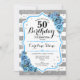 50th Birthday - Blue Silver White Stripes Invitation