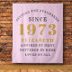 Celebrate the special occasion of a 50th birthday with this luxurious pink and gray wall banner, perfect for personalizing with name and year of your birth, 1973. This large tapestry is adorned with a beautiful, unique design and a stylish font for a memorable, one-of-a-kind birthday celebration. Showcase this special keepsake at the party and enjoy the memories for years to come.