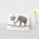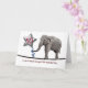 An elephant balanced on a tightrope carrying a birthday balloon.