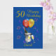 A stylish Happy birthday 50th age card. This card features a sparkling wine bucket glasses and balloons and confetti all on a blue background with gold colored text. a lovely card to give to family and friends to congratulate them on their special birthday. Can be customize for any age and title can also be amended then personalize the card by amending the name and the message inside which currently reads " Happy Birthday, Wishing you a fun-filled fabulous 50th!." Background color can be changed if needed, just click on the personalize further button.