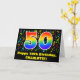 This fun, exciting, and colorful birthday-themed greeting card design features a large number "50" having a rainbow spectrum gradient inspired pattern. It also features the message "Happy 50th Birthday,", and an editable recipient name. The front also features a colorful music notes and symbols pattern. The inside features an editable birthday greeting message, or could perhaps be cleared and left blank if a message is to be written by hand instead. An editable birthday greeting card like this might be a fun way to send a birthday greeting message to a musician, a singer, a music composer, or somebody else who is celebrating their fiftieth birthday. [~Z0000426]